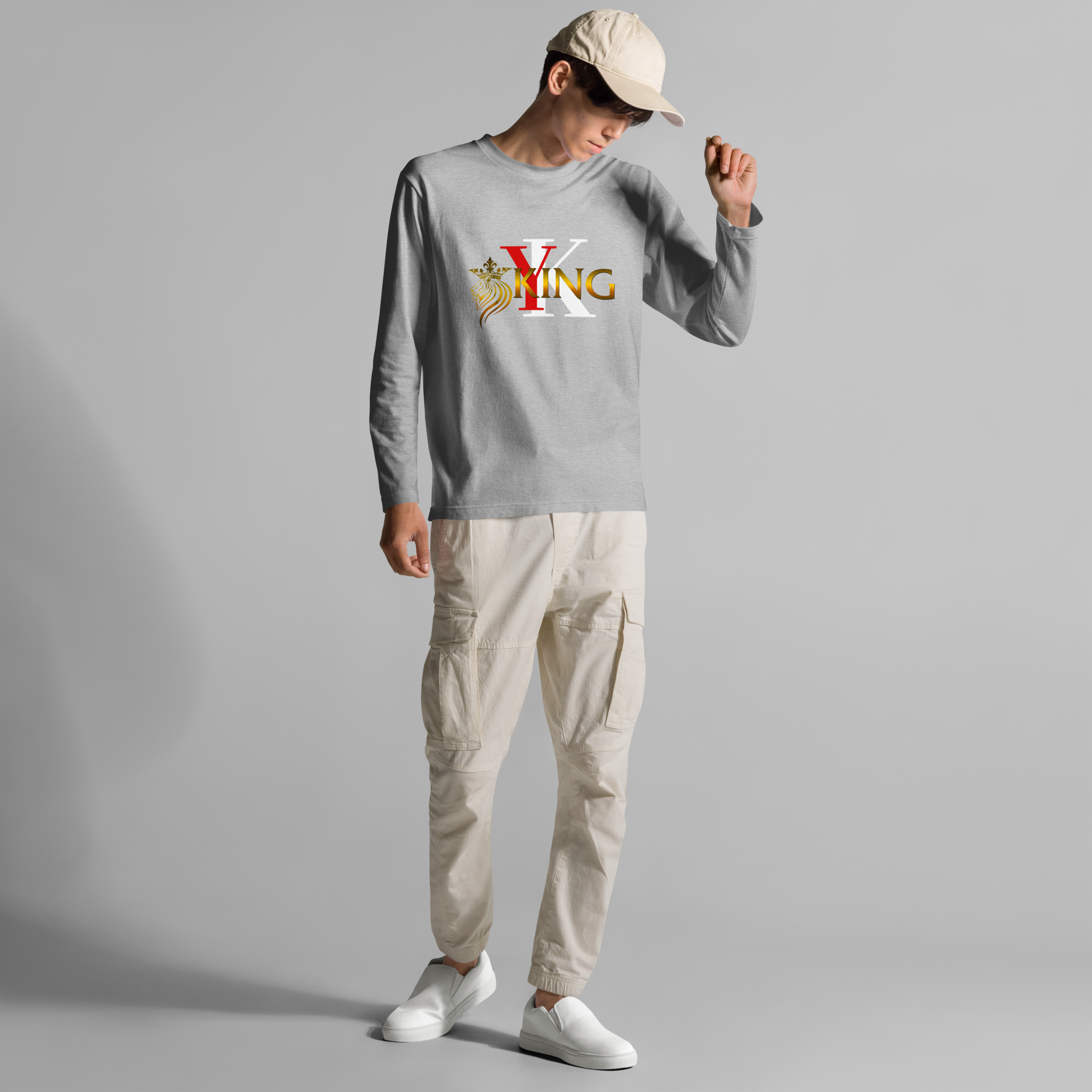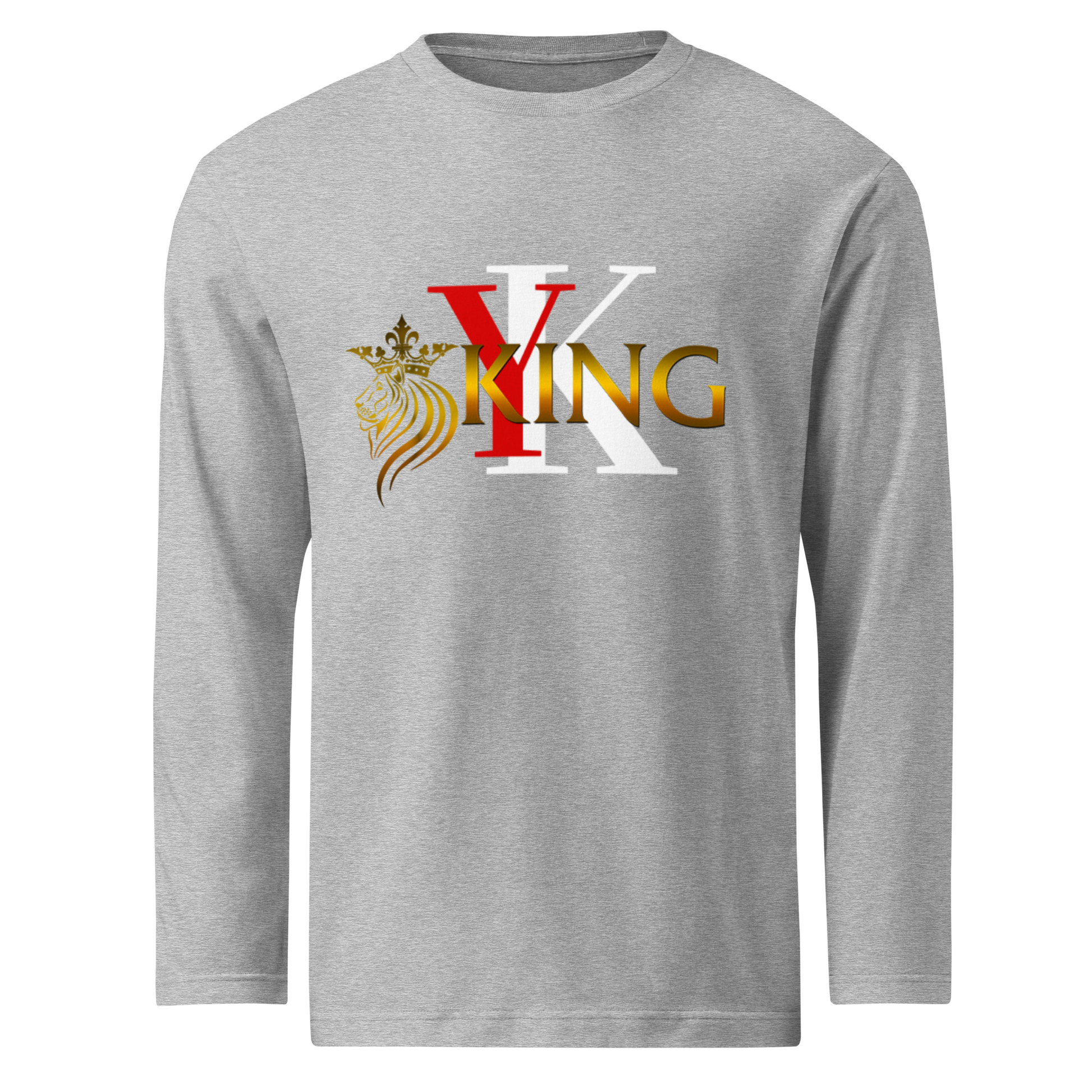 Step into bold confidence with the Young Kingsman Signature Long Sleeve Tee — a sleek, lightweight statement piece designed for those who lead with purpose. Featuring the iconic YK emblem, crowned lion, and metallic-gold KING lettering, this shirt represents strength, identity, and resilience.